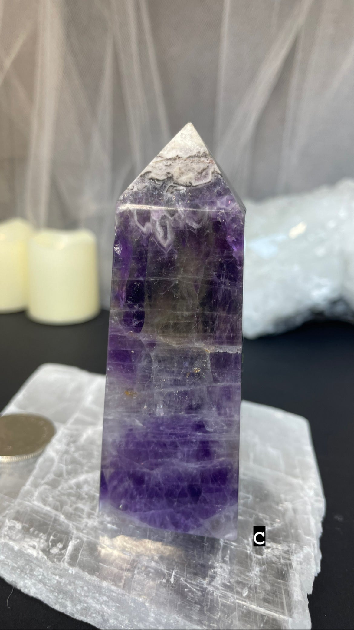 Amethyst promotes spiritual wisdom, serenity and calm. This stone is well known for reducing mental health issues. It can block negative vibrations from coming your way, by creating a protective shield around your body and arua. Amethyst Can help with addictions by promoting positive thinking, chevron amethyst has a strong energy has the Quartz amplifies its natural aura and vibration, amethyst has loving violet rays that raises vibrations!