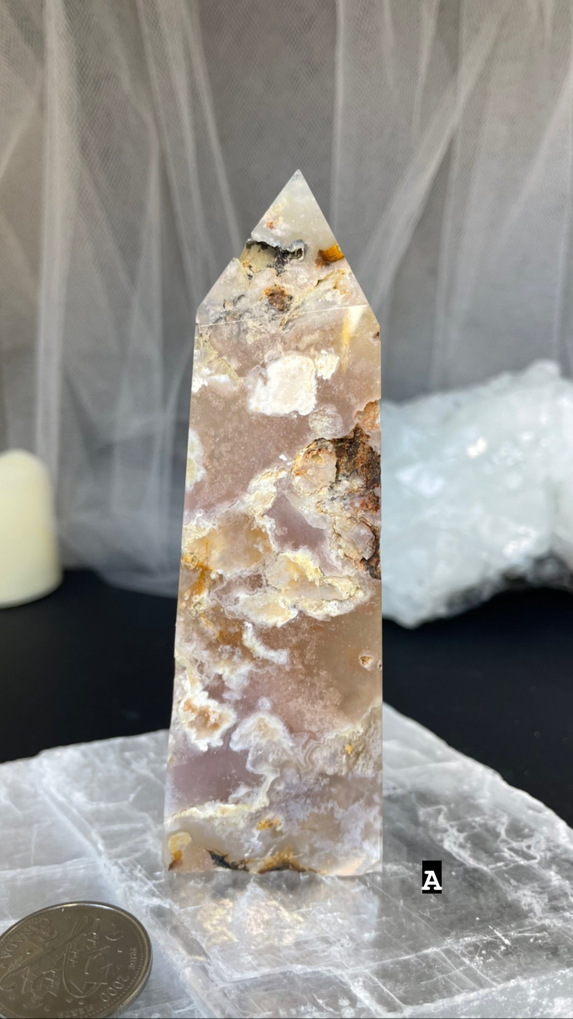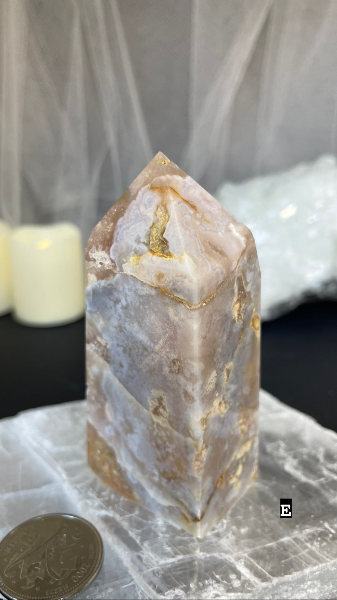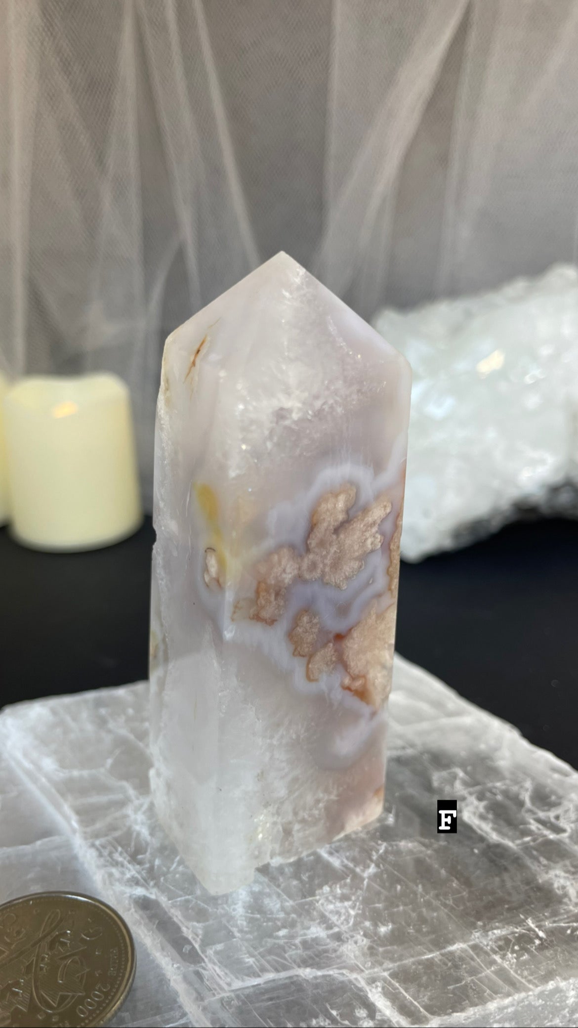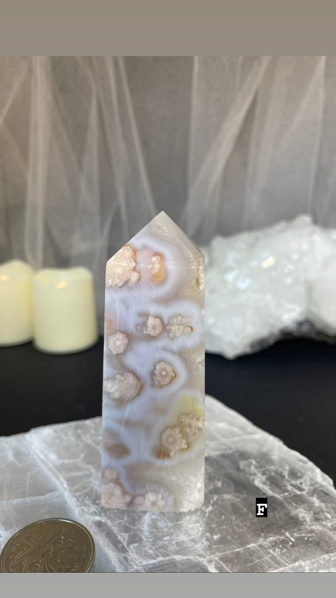 Flower agate: Encourages you to grow and blossom, this stone pushes you to your highest potential to help you manifest your dreams, resulting in guiding you to make a plan for meaningful growth in your life. This is a very powerful stone that is associated with the heart and root chakra.