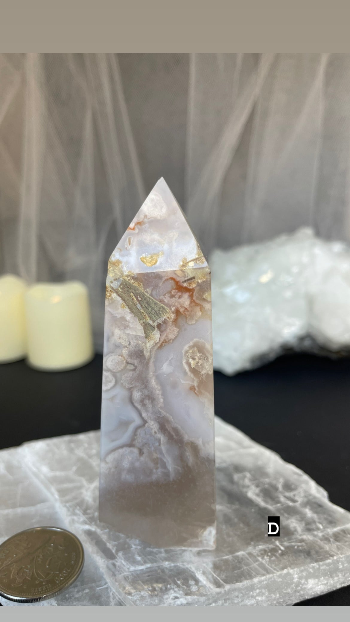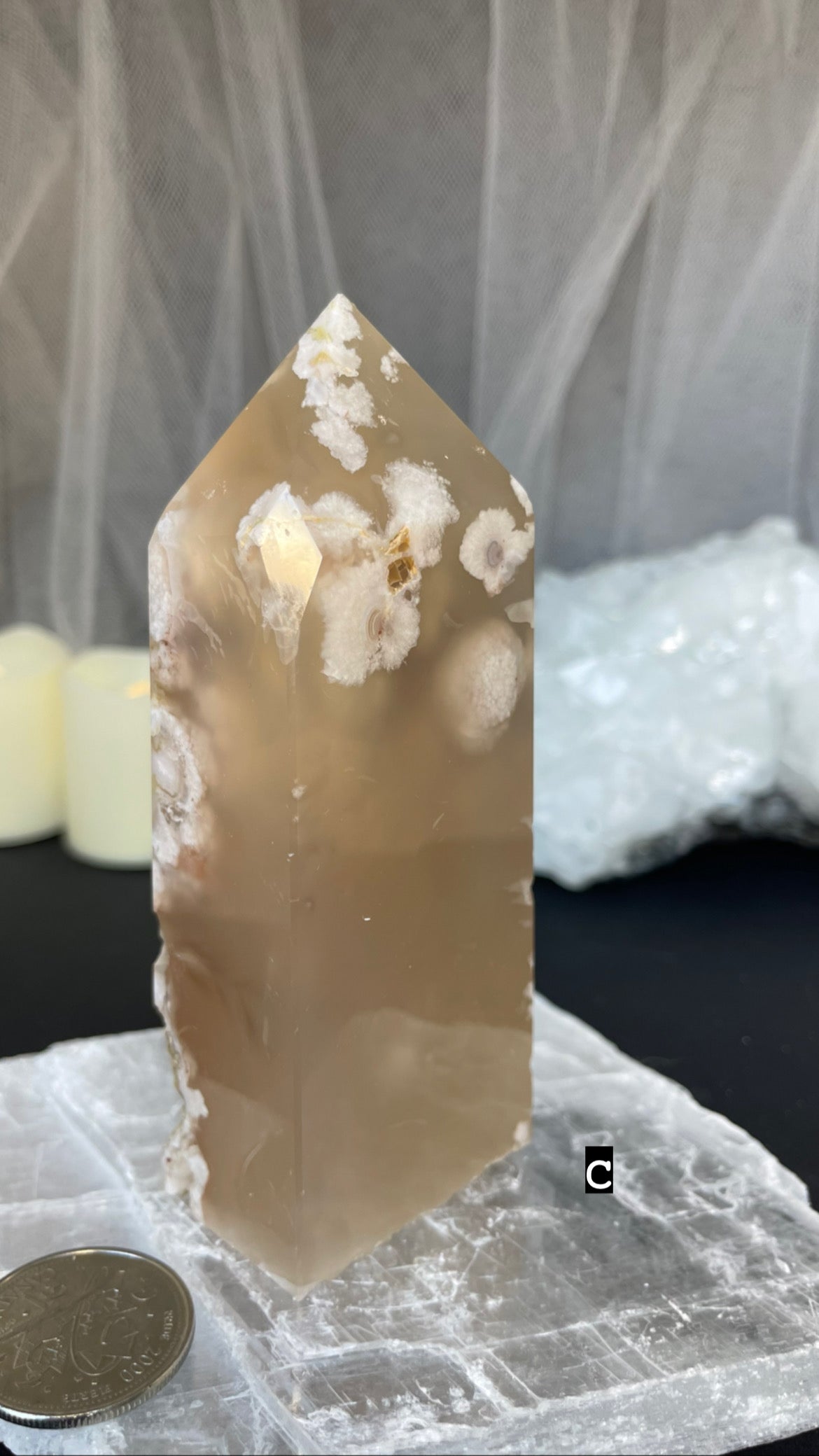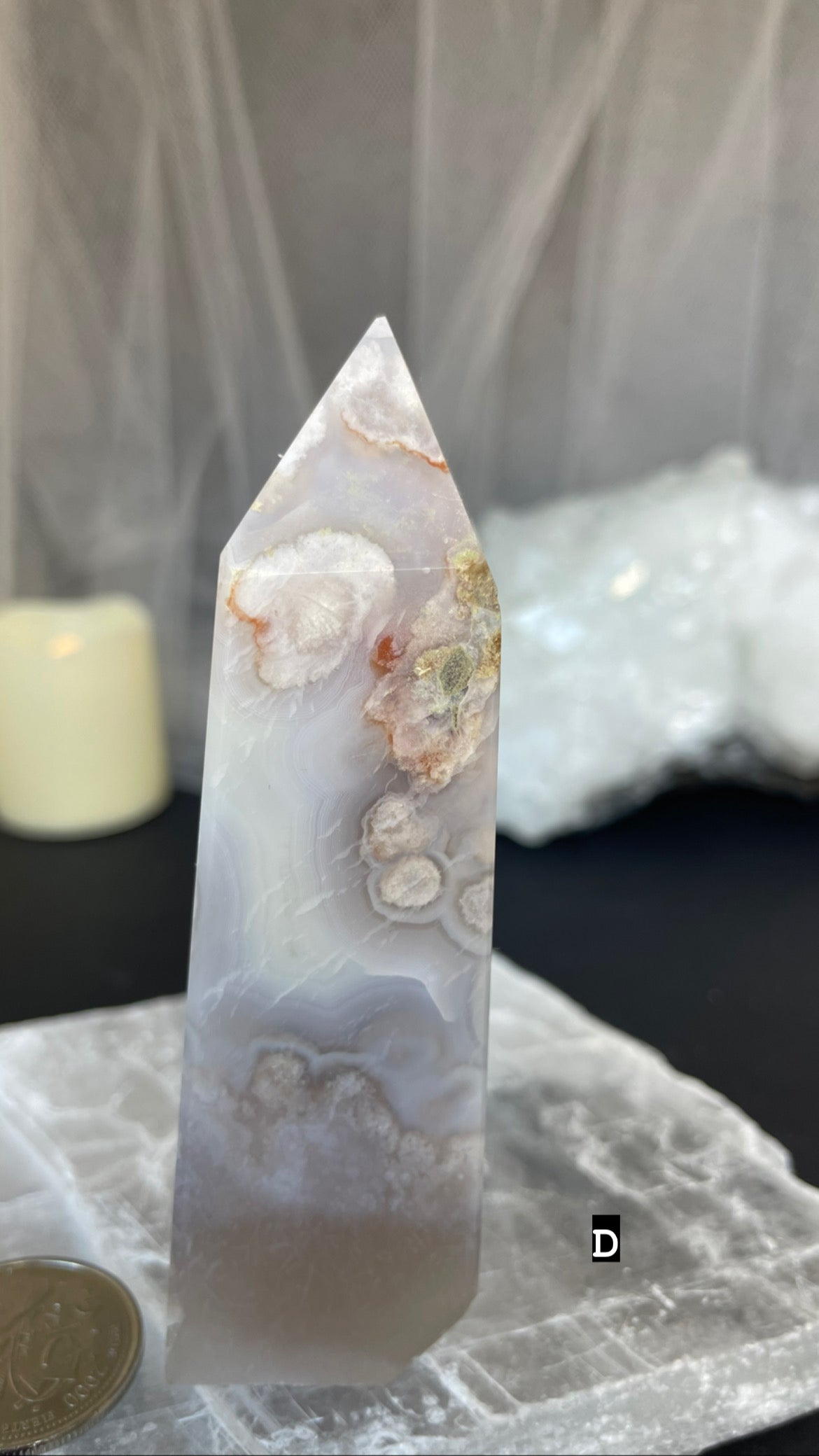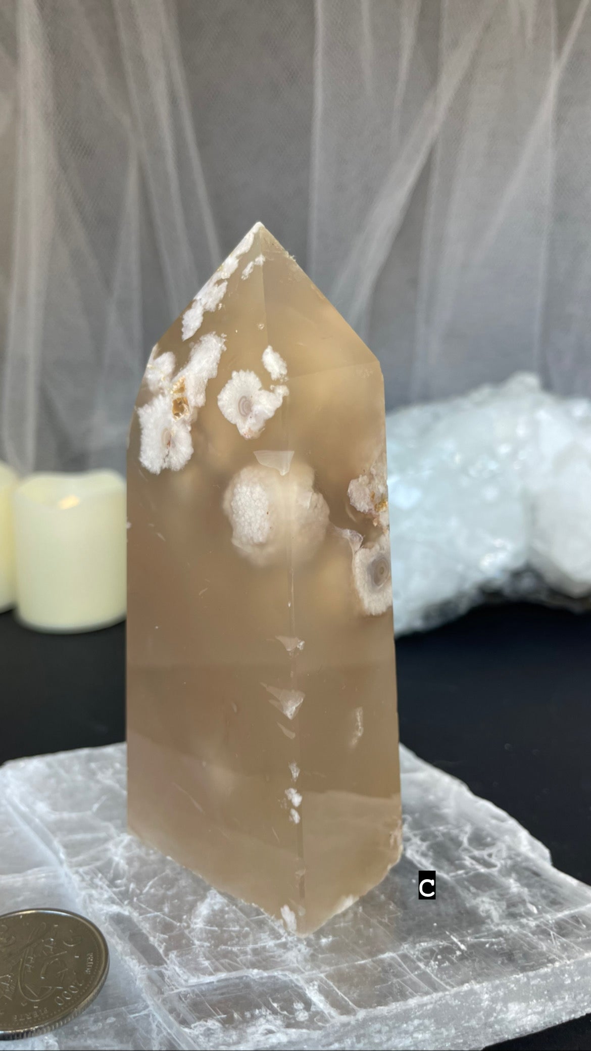 Flower agate: Encourages you to grow and blossom, this stone pushes you to your highest potential to help you manifest your dreams, resulting in guiding you to make a plan for meaningful growth in your life. This is a very powerful stone that is associated with the heart and root chakra.