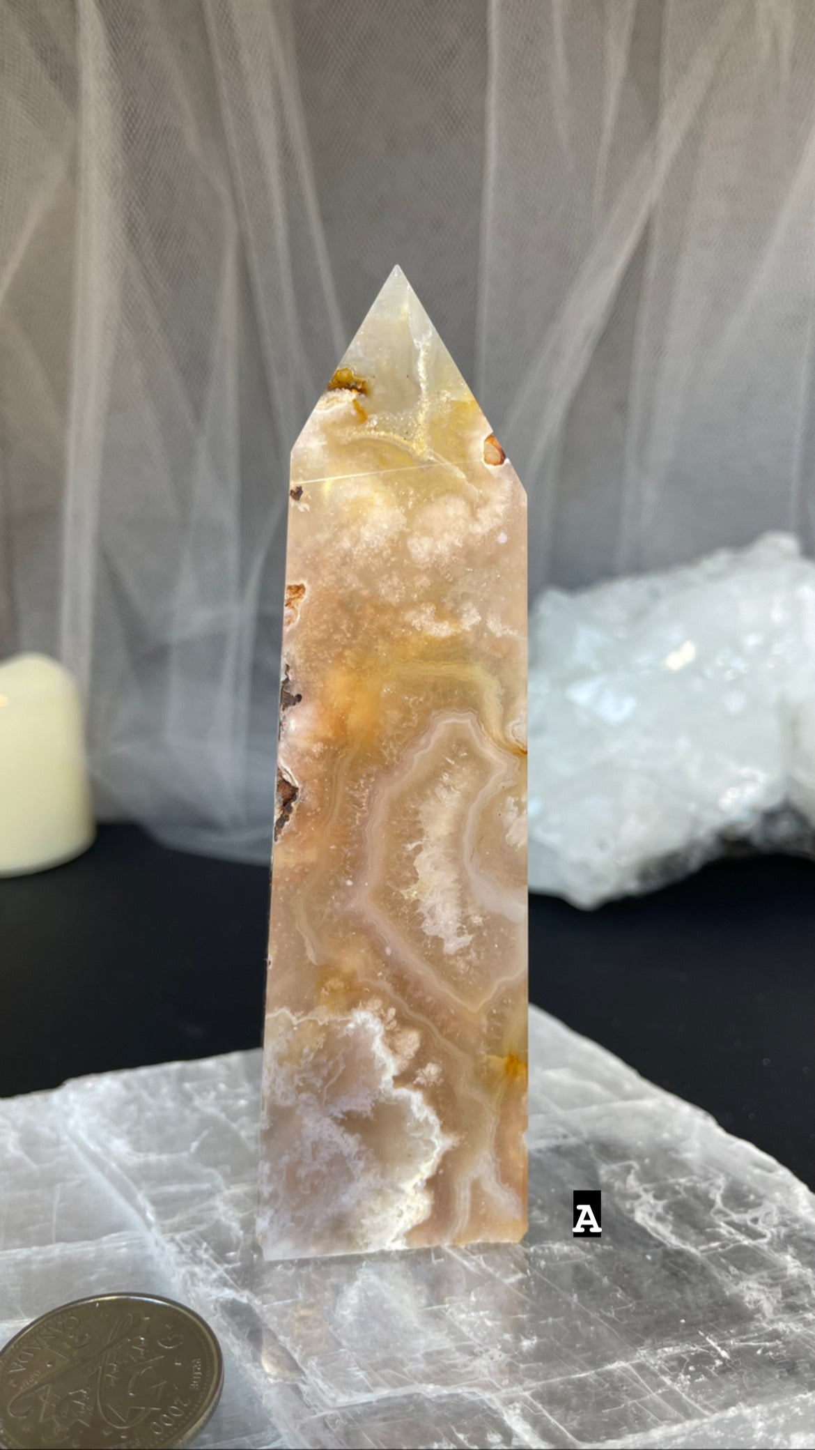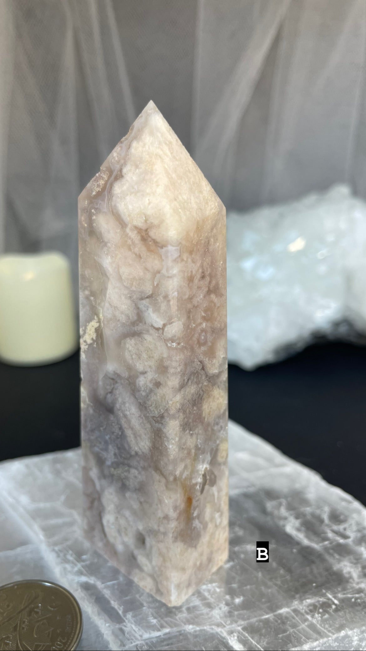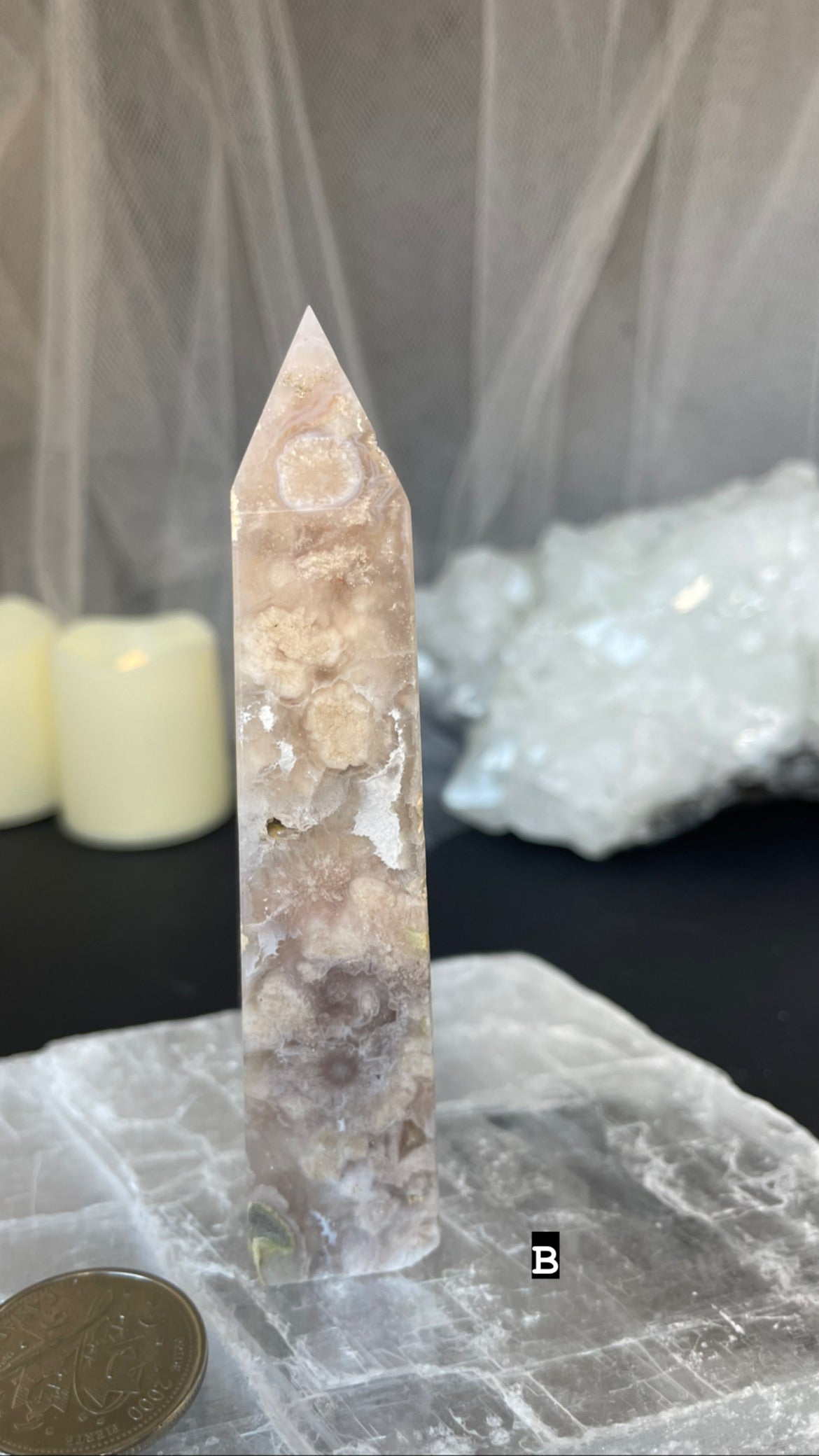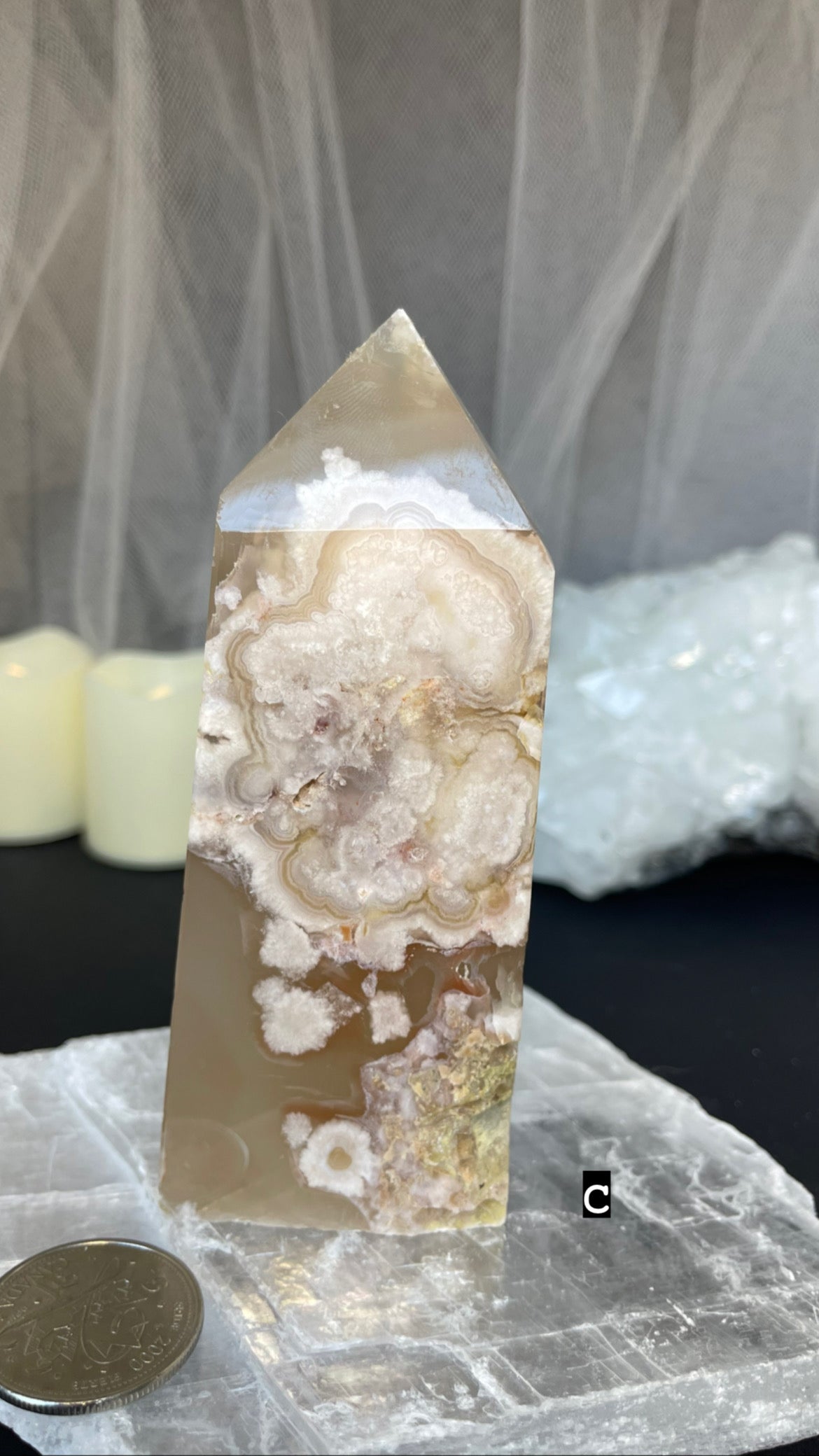 Flower agate: Encourages you to grow and blossom, this stone pushes you to your highest potential to help you manifest your dreams, resulting in guiding you to make a plan for meaningful growth in your life. This is a very powerful stone that is associated with the heart and root chakra.
