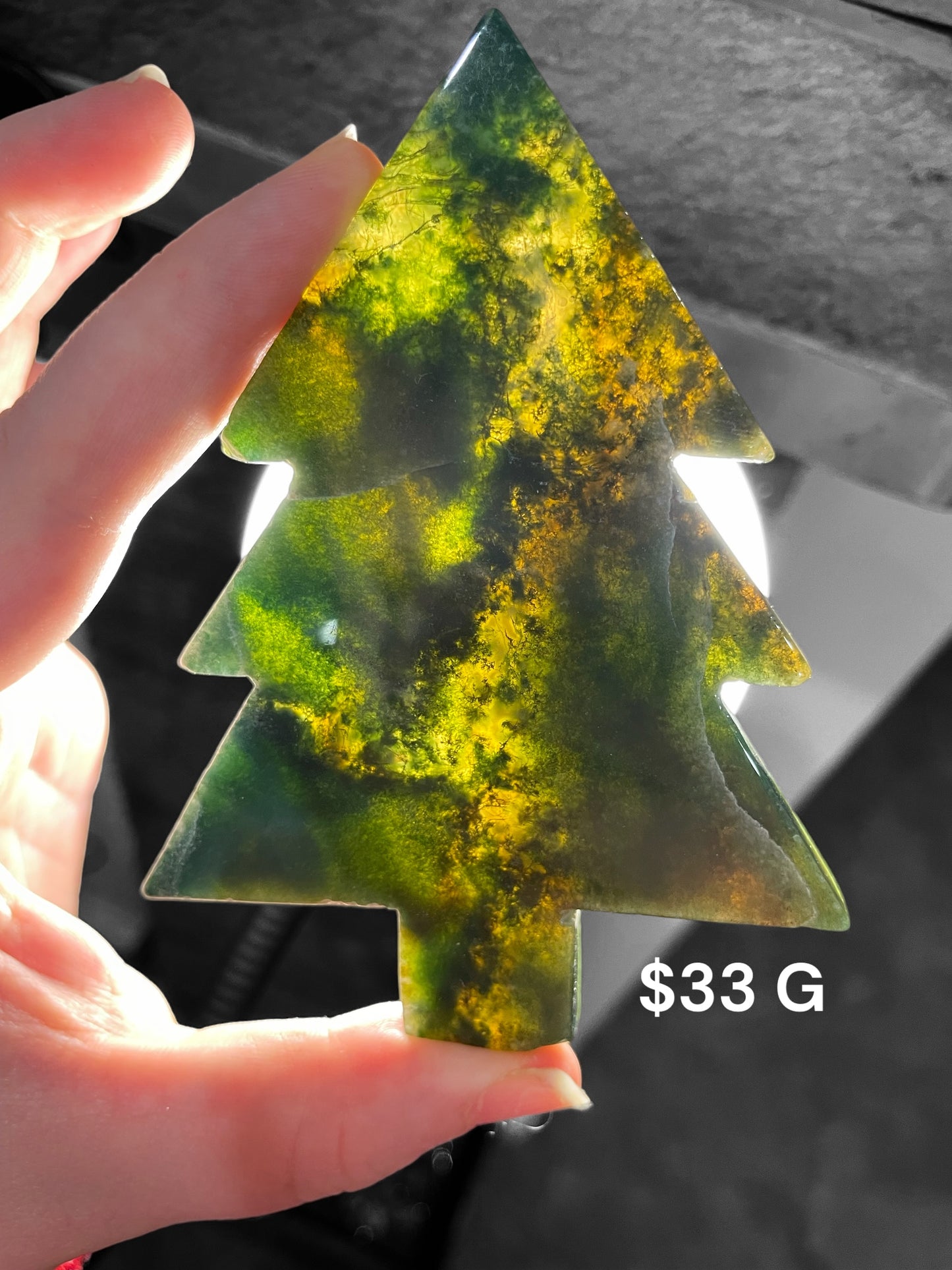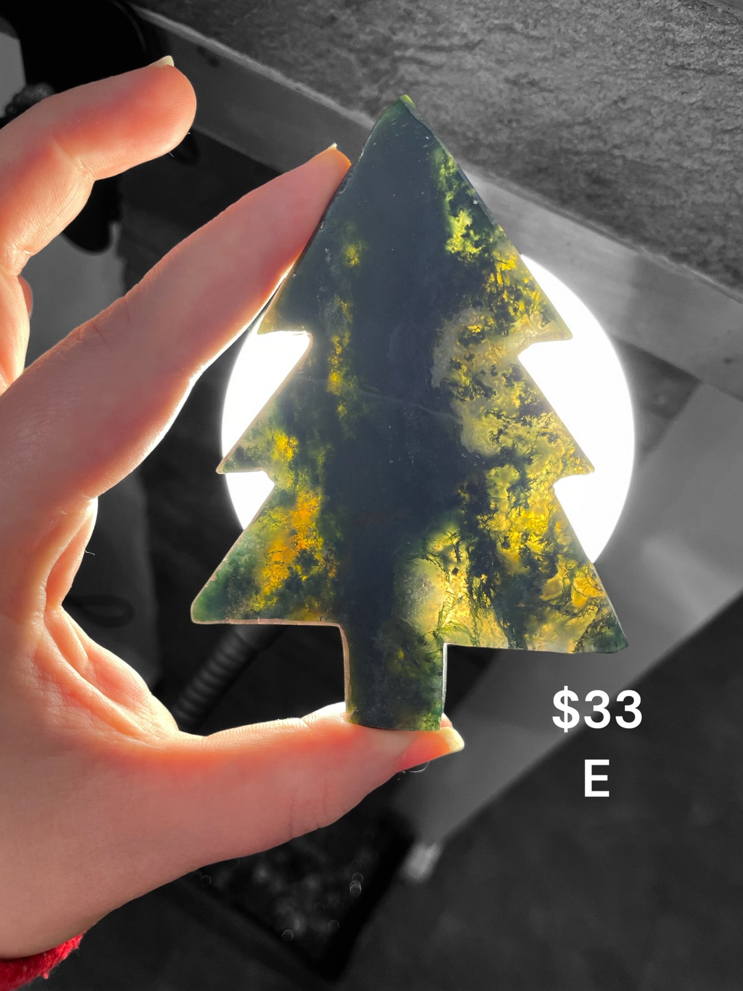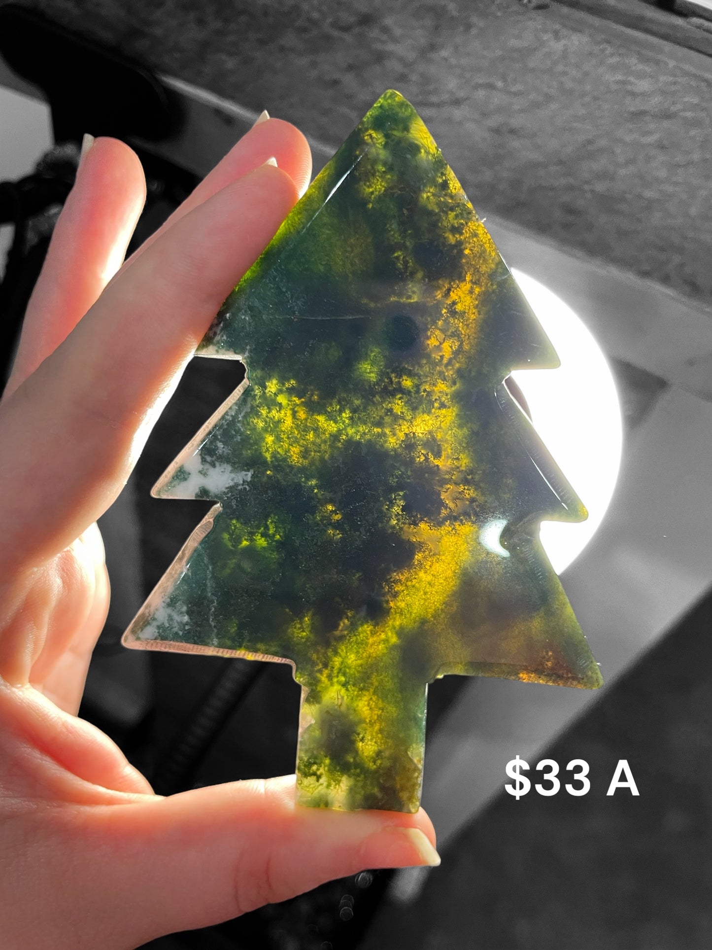 High quality moss agate Christmas shaped trees- Nice backlight on pieces A - G H & I are purple moss agate