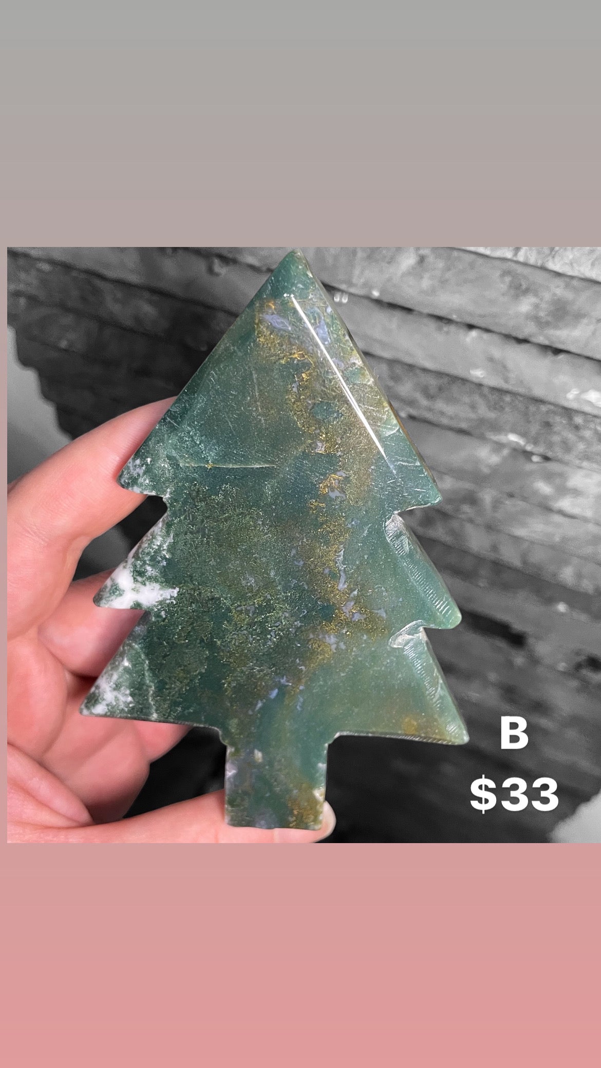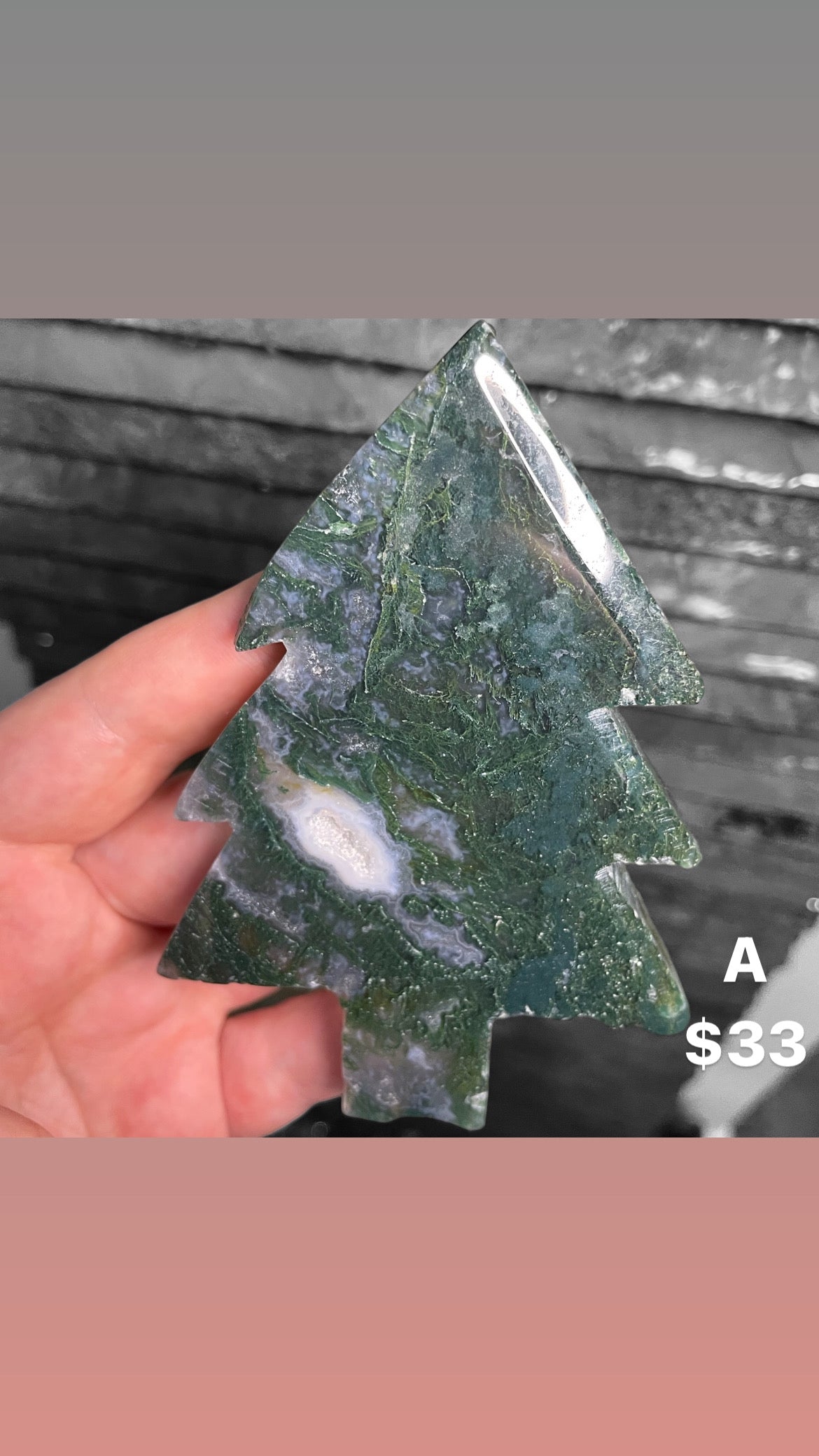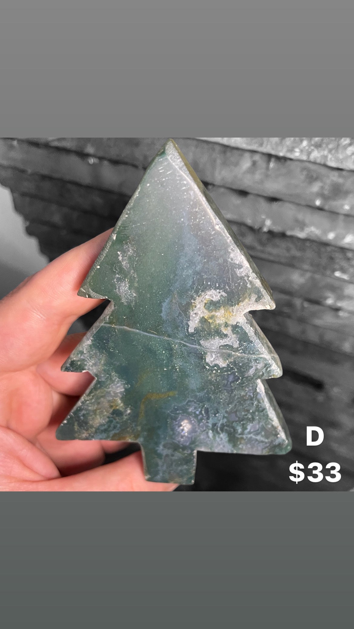 High quality moss agate Christmas shaped trees- Nice backlight on pieces A - G H & I are purple moss agate